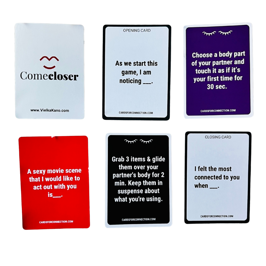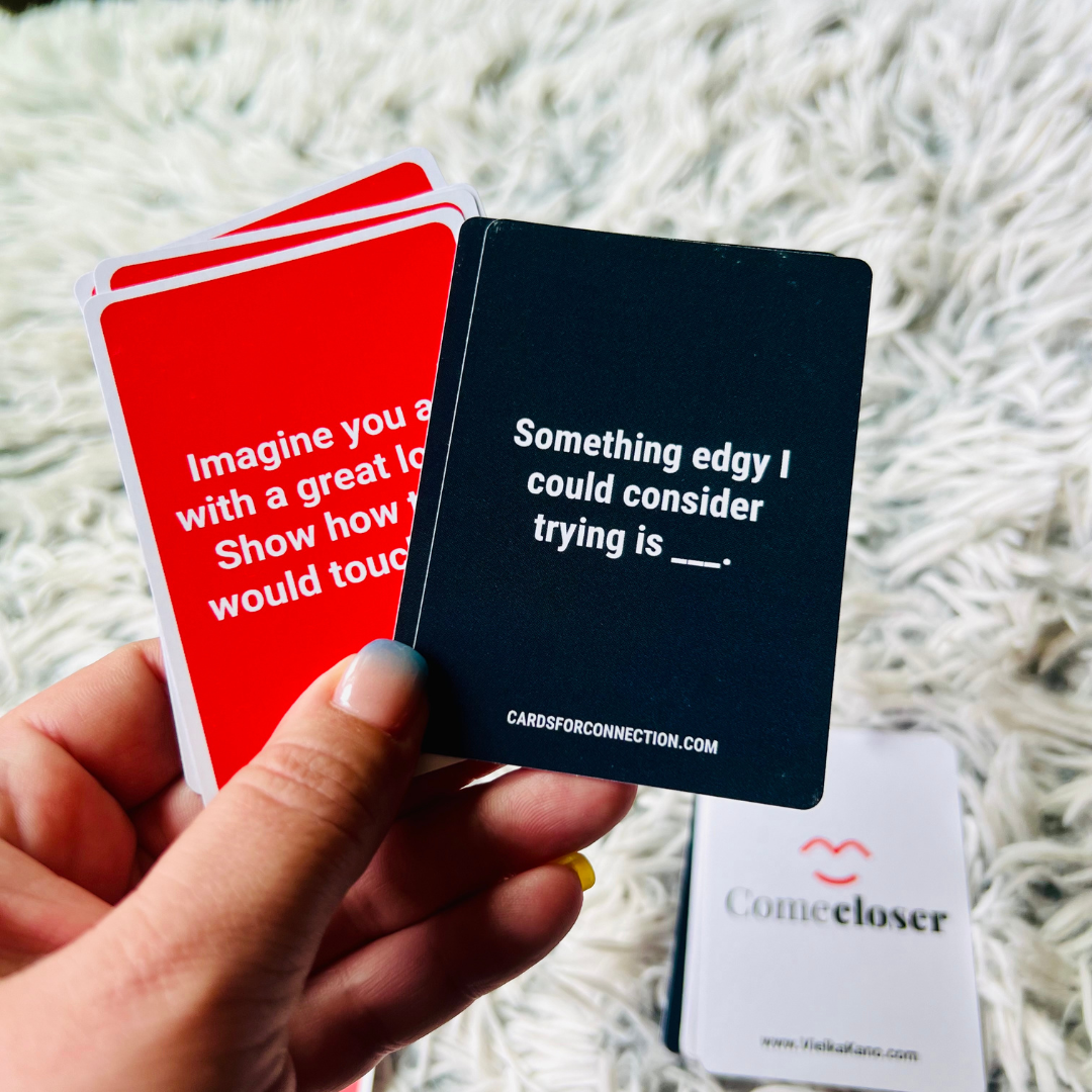 Come Closer™ gives you structure, prompts, and playful energy to move past the usual “we should talk about it” and into: