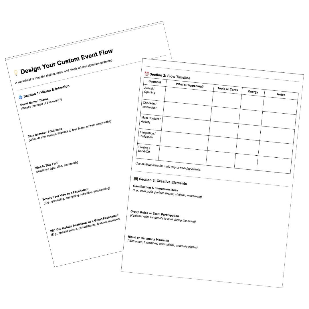 A fun, approachable facilitation guide with real-life examples, flow ideas, and connection-first tips that walk you through using the deck.