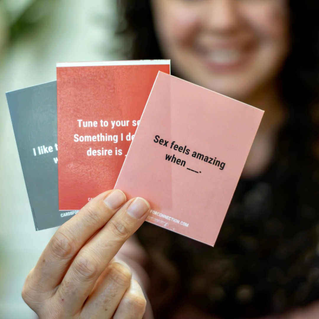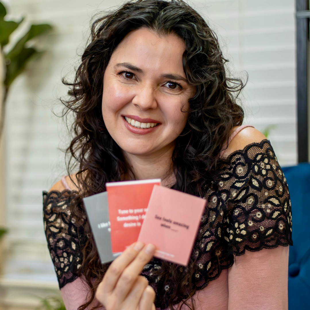 The Come Closer deck is crafted by Vielka Kano, an AASECT Certified Sex Therapist with over twenty years of experience helping couples reconnect and deepen their relationships.