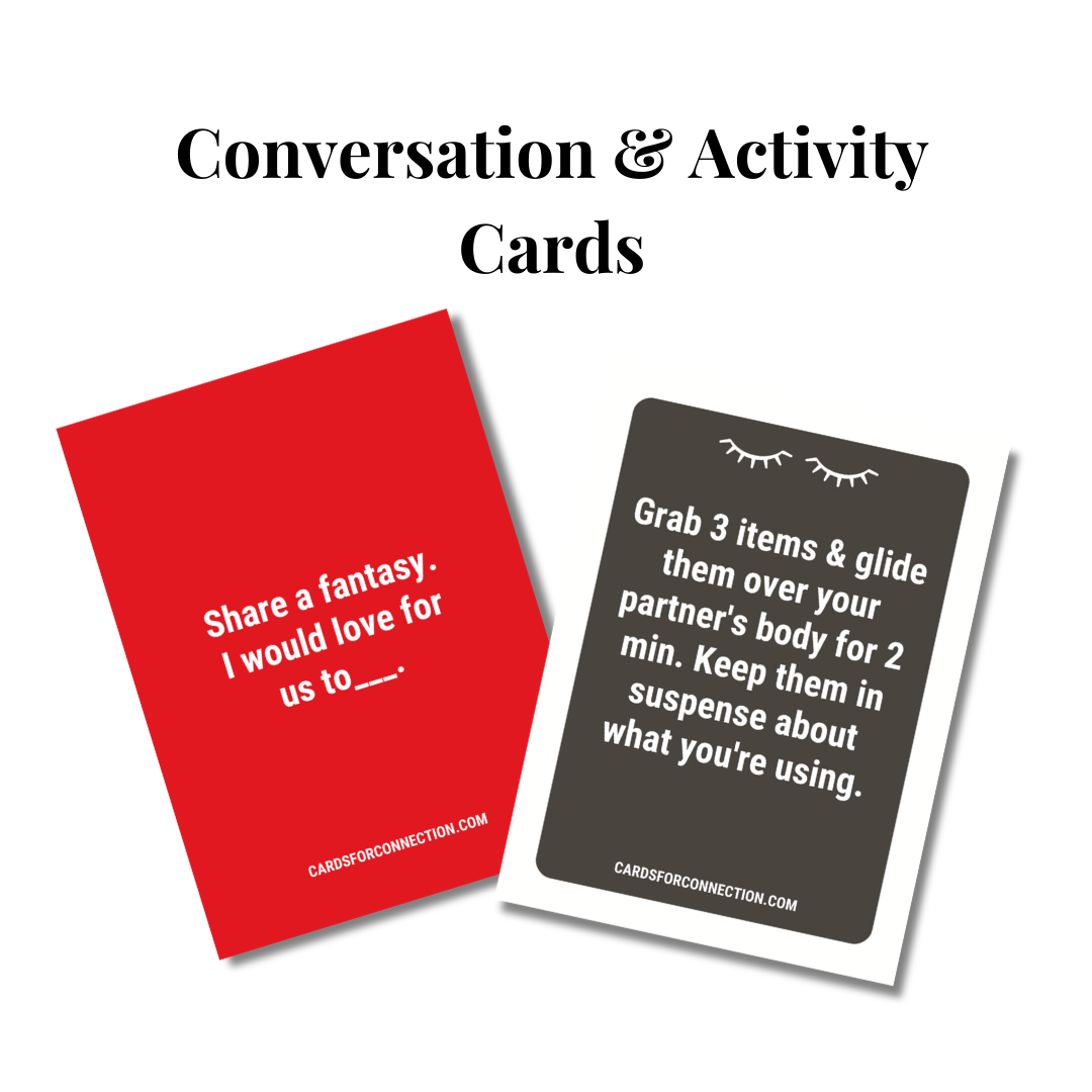 ✅ 55 poker-sized cards with unique prompts and playful activities in five categories.
