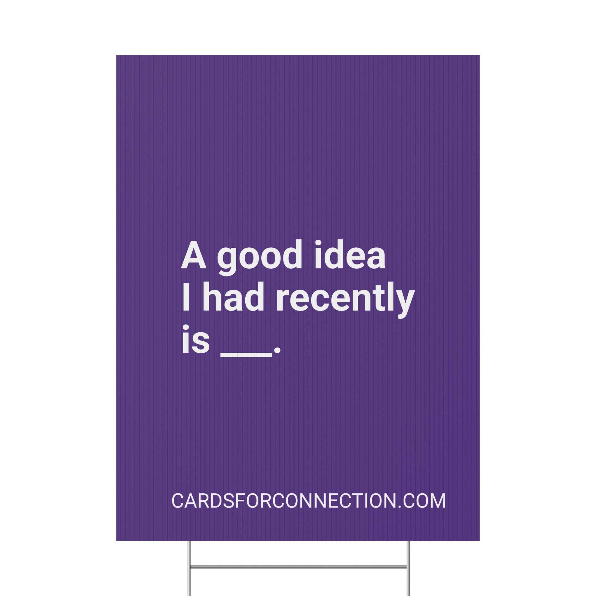 Transform your outdoor space into a beacon of connection and curiosity with the Cards for Connection® Plastic Yard Sign. Designed to inspire deeper conversations in neighborhoods, at events, and beyond, each sign features a thought-provoking prompt from the bestselling Cards for Connection® deck.