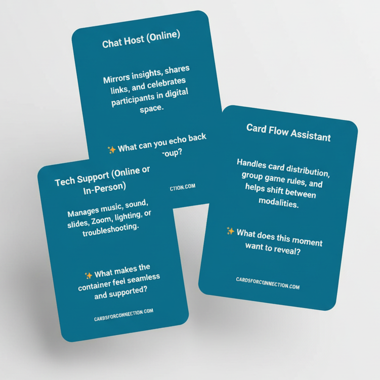 Lead groups with clarity and confidence. Get four Cards for Connection® decks plus digital facilitation tools, role cards, worksheets, and guides for teams, retreats, and events.